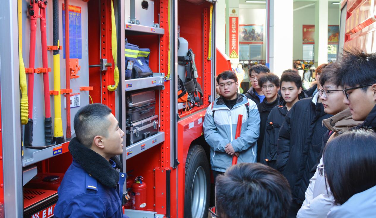 为切实增强广大青年的消防安全意识,提高团员青年灵活应对突发事故的应变能力,更好地掌握消防安全知识,进一步营造良好的消防安全环境。2023年11月18日上午,我院20名团员青年在学院团委张亮老师的带领下,来到徐州市铜山区消防救援大队开展2023年消防安全素养公开课,零距离体验“火焰蓝”的日常工作与生活,感受“消防文化”。