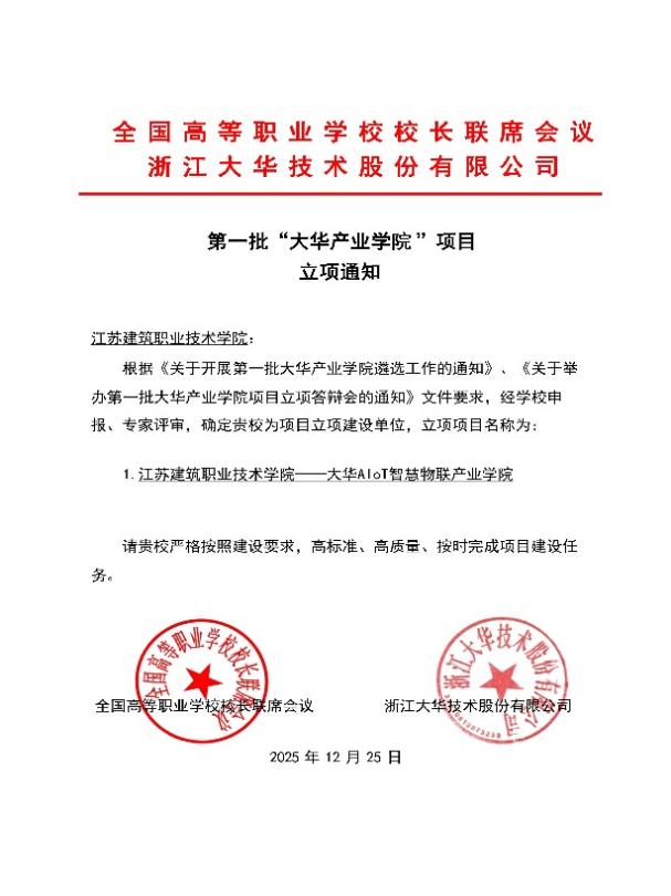 2025年12月25日,江苏IM电竞技术学院与浙江大华技术股份有限公司携手共建的“大华AIoT智慧物联产业学院”正式获批立项。这是我校深化产教融合、推动专业群与产业需求精准对接的重要举措,标志着我校在智慧物联领域人才培养、产学研协同创新方面迈入新阶段,将为区域建筑行业数字化转型与智慧物联产业发展注入新动能。